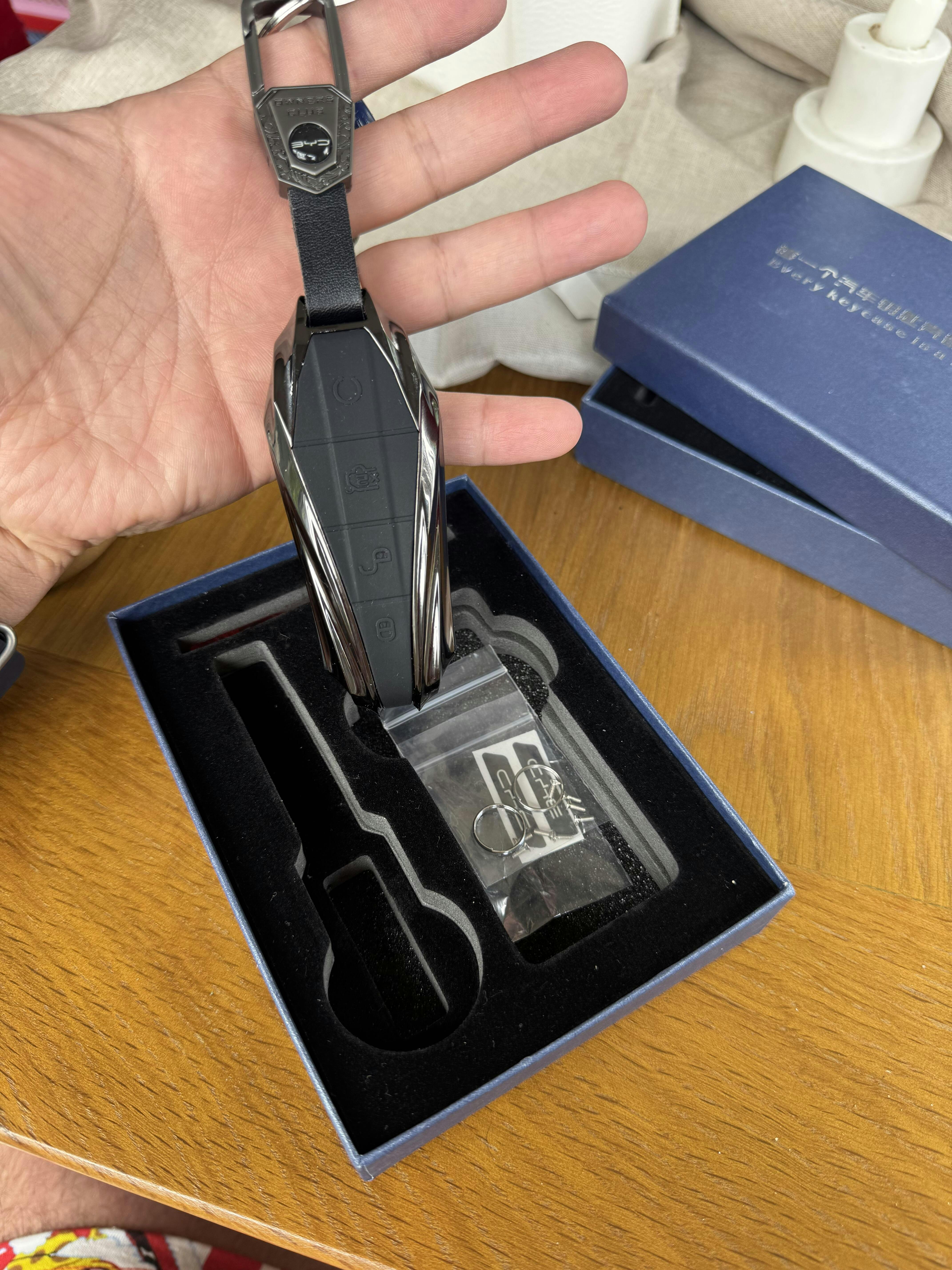 The key case itself is heavy-duty, luxurious and exactly as described and shown in the photos. I bought two and have zero regrets. They protect my new car keys perfectly and look elegant and premium. Thank you!