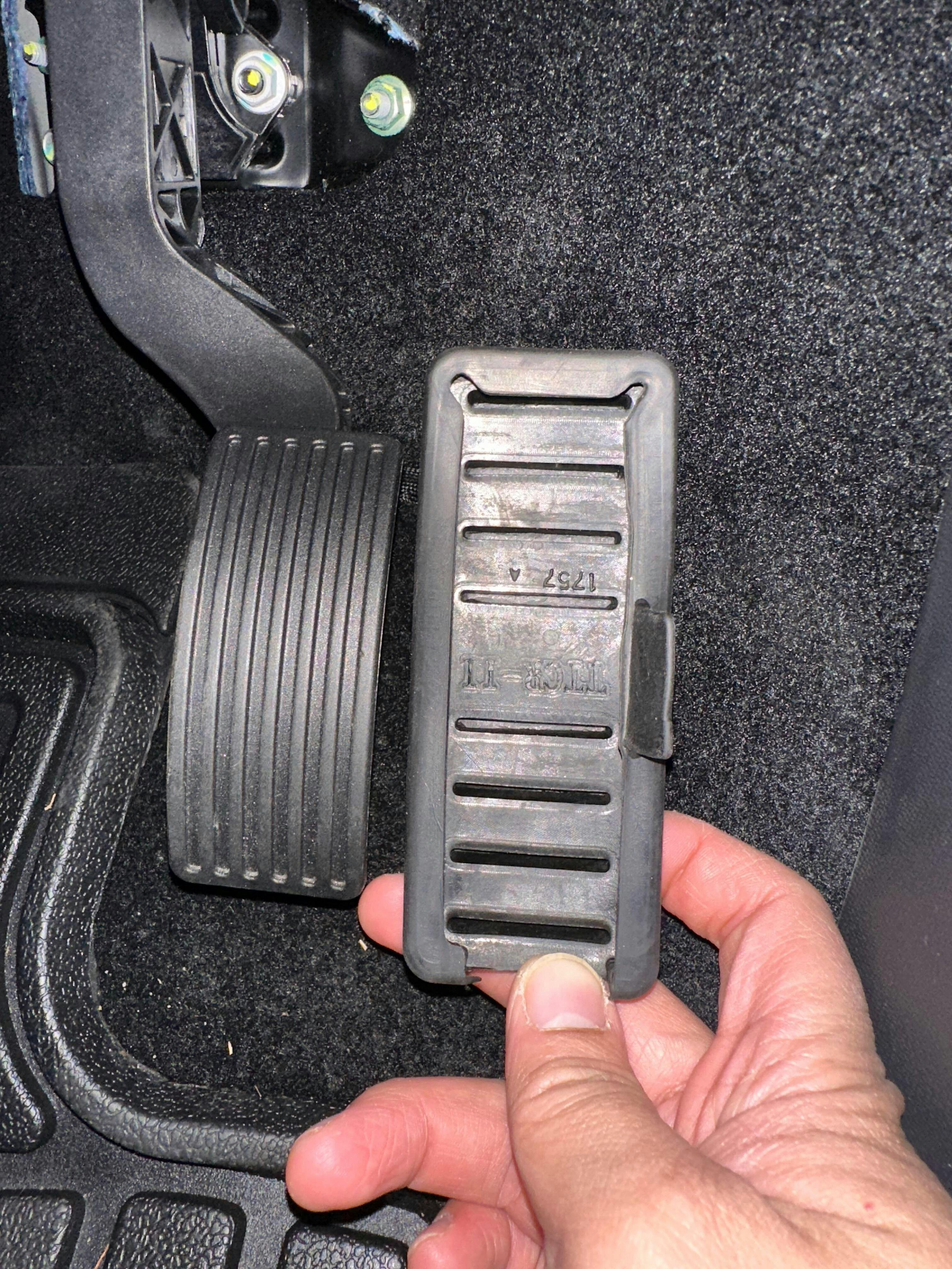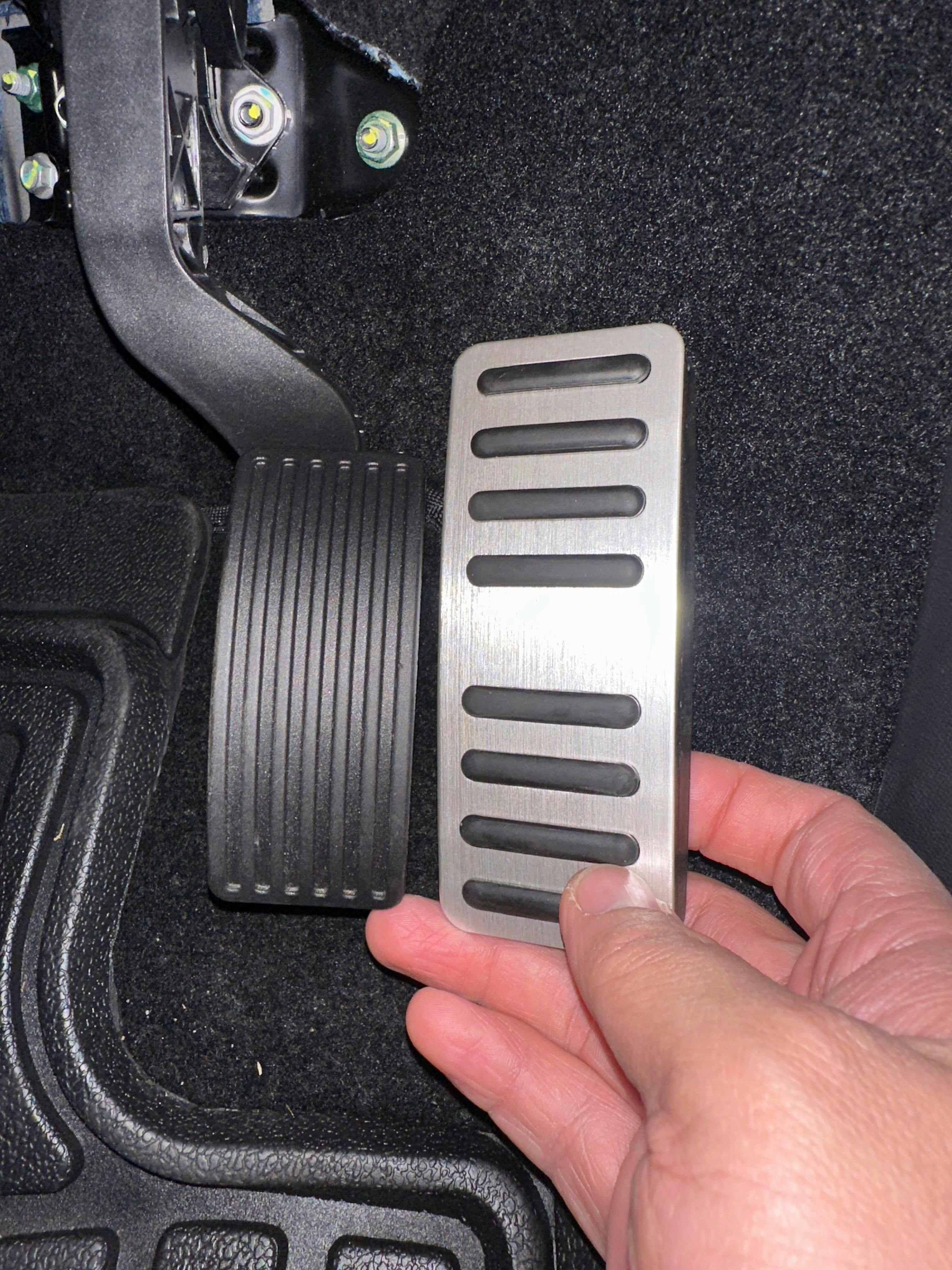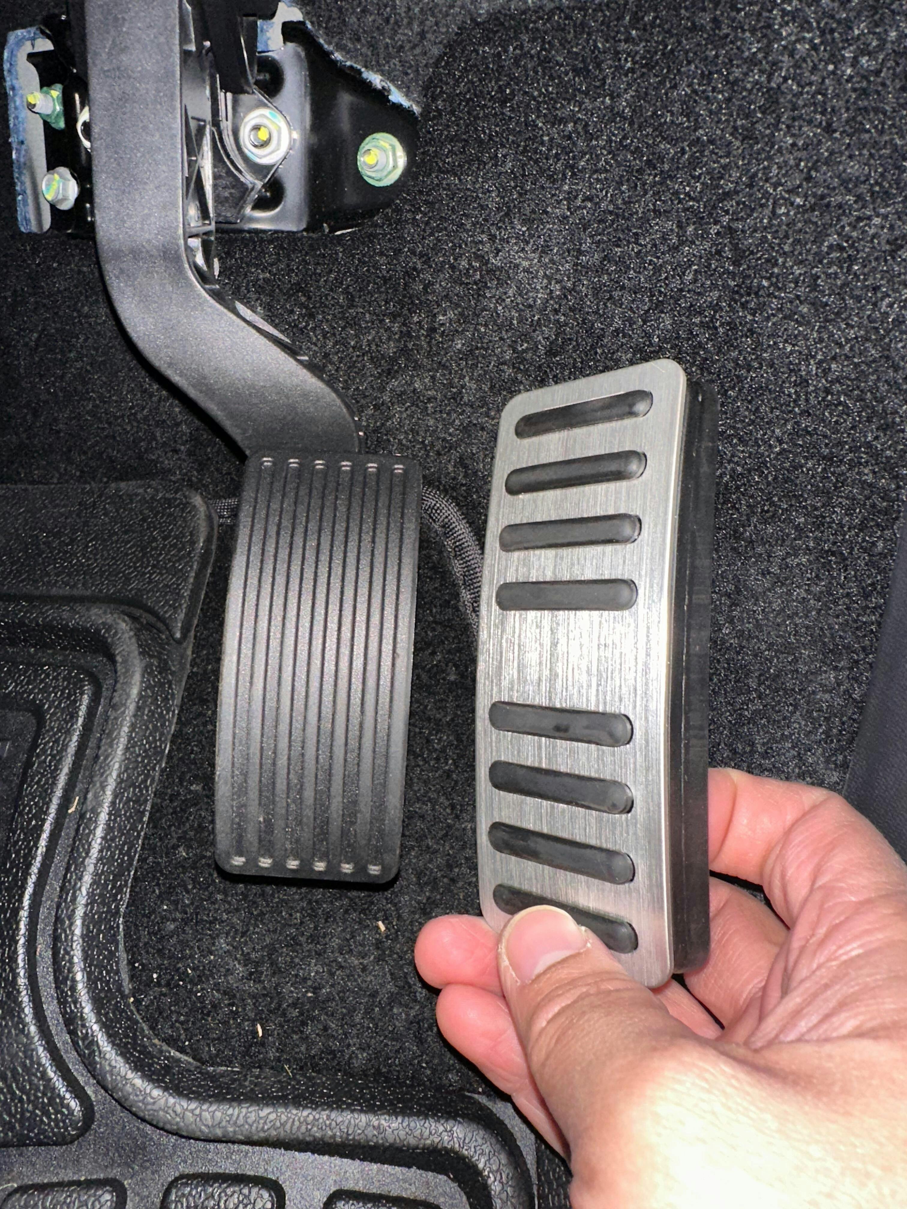 Just remove rubber on the break pedal and replace with the new anti slip aluminium.