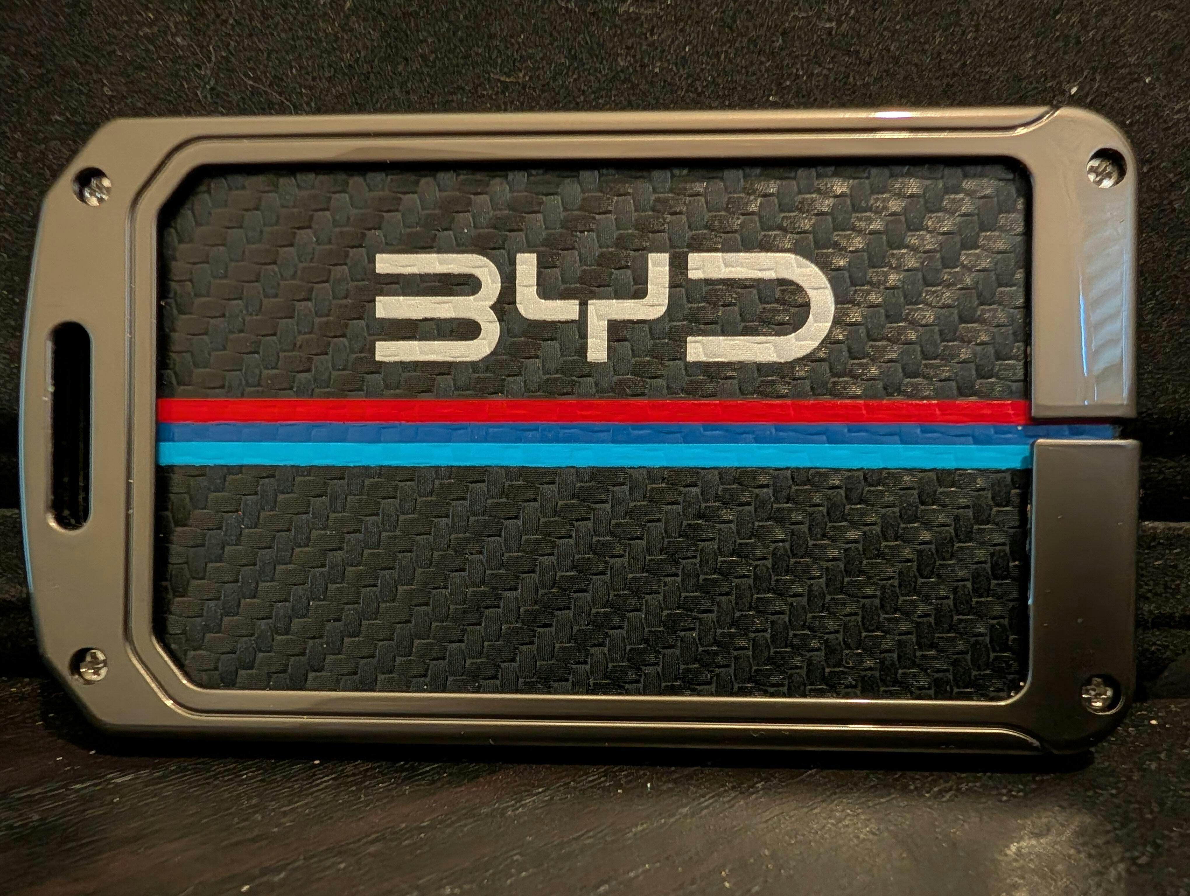 NFC Card Key Cover for BYD – Metal Frame with Carbon Fibre Pattern